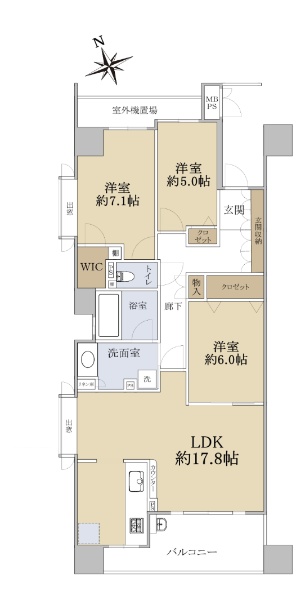 三方角住戸(東・北・西)! 専有面積90.10uの3LDKタイプ!