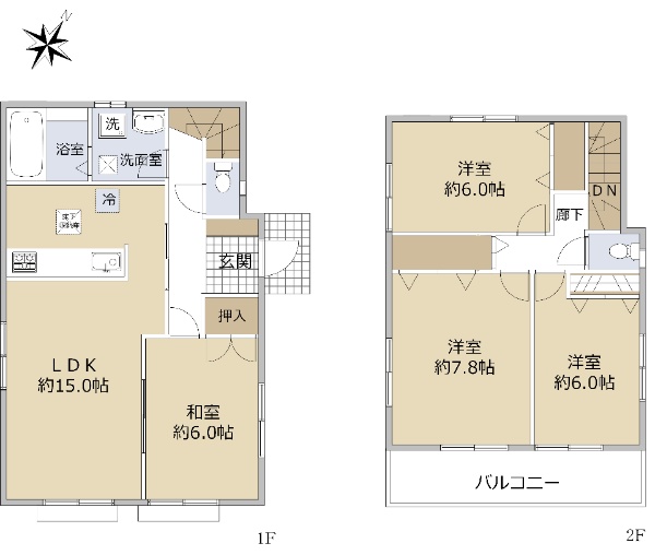 2012年6月築 南側道路で陽当たり良好な4LDK カースペース3台可 ※車種による