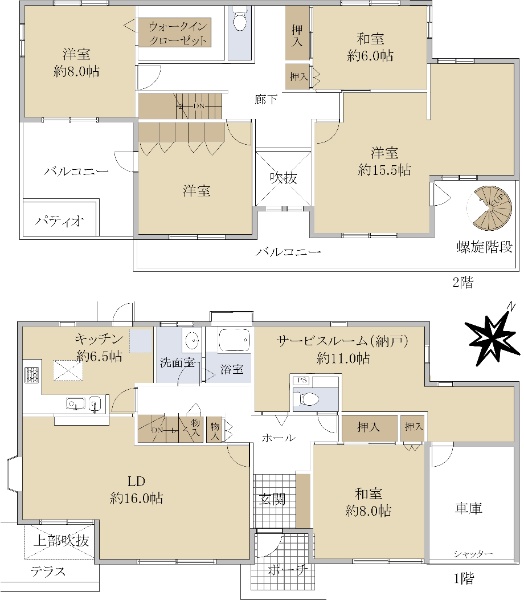 ◇軽量鉄骨造6LDKの邸宅 ◇両面バルコニーのため、陽当り通風ともに良好