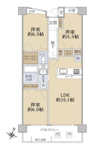 ☆専有面積:121.17u ☆南・東・北の3方角部屋