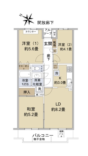 西武新宿線「新所沢」駅徒歩6分、三方角部屋