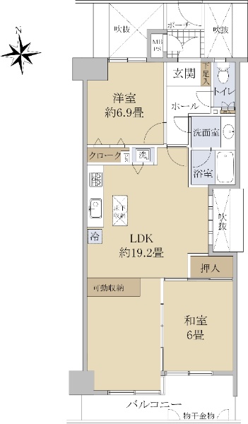 LDK南向き!日当たり良好です。暮らしに便利な全室収納。