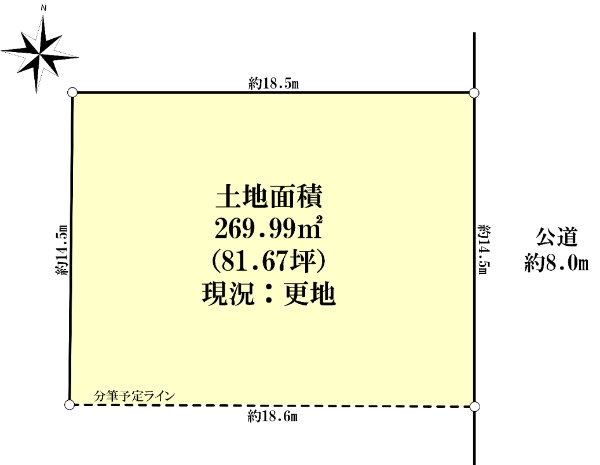 北東角地 土地面積186.13u(56.30坪) 解体更地渡し 平坦地