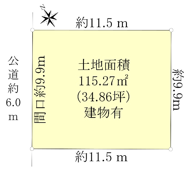 ■土地面積:115.27u(34.86坪) ■土地間口約9.9m