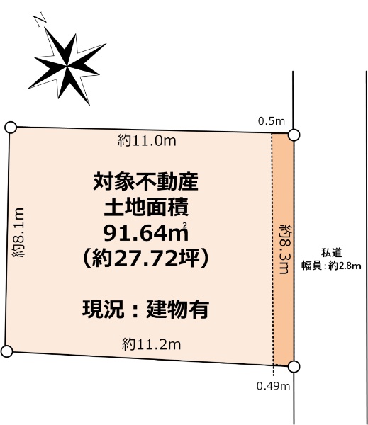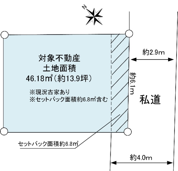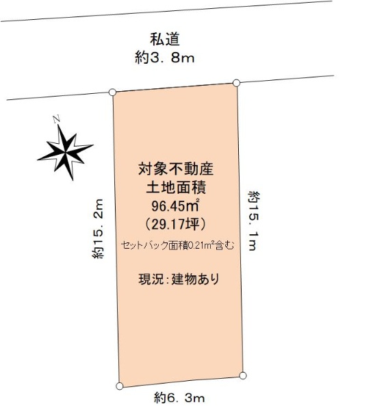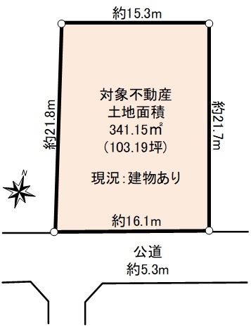 間口:約16.1m 土地面積(公簿):341.15u 南東向きにつき陽当たり良好