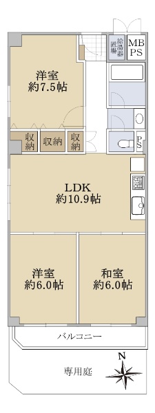 ■専有面積78.75uの3LDK■南向きバルコニー・専用庭付き■3沿線3駅利用可能