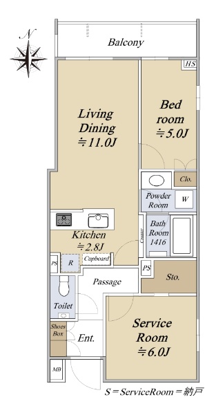大江戸線【蔵前】駅徒歩3分!55.34uの1LDK+サービスルーム(納戸)!