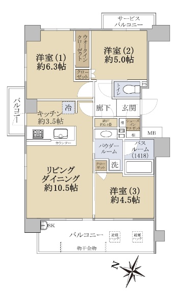 • 南向き(南西・南東含む)バルコニー方向が南向き(南西・南東含む)