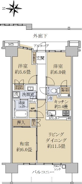 ■南浦和駅徒歩9分、南西角住戸、3階、3LDK 専有面積85.46u■