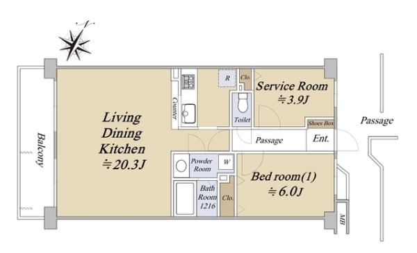 | 専有面積 | 61.84m2 | 間取り | 1SLDK ※Sはサービスルーム(納戸) |