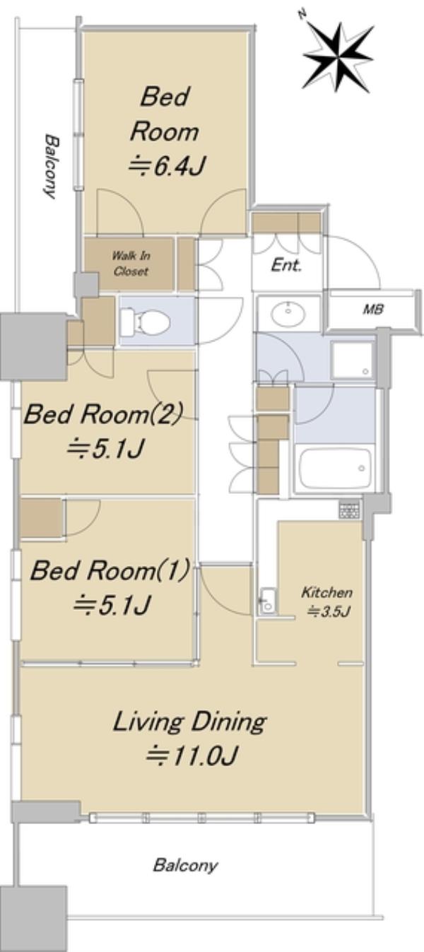 | 間取内訳 | 洋室6.4畳 洋室5.1畳 洋室5.1畳 LDK14.5畳 | ||