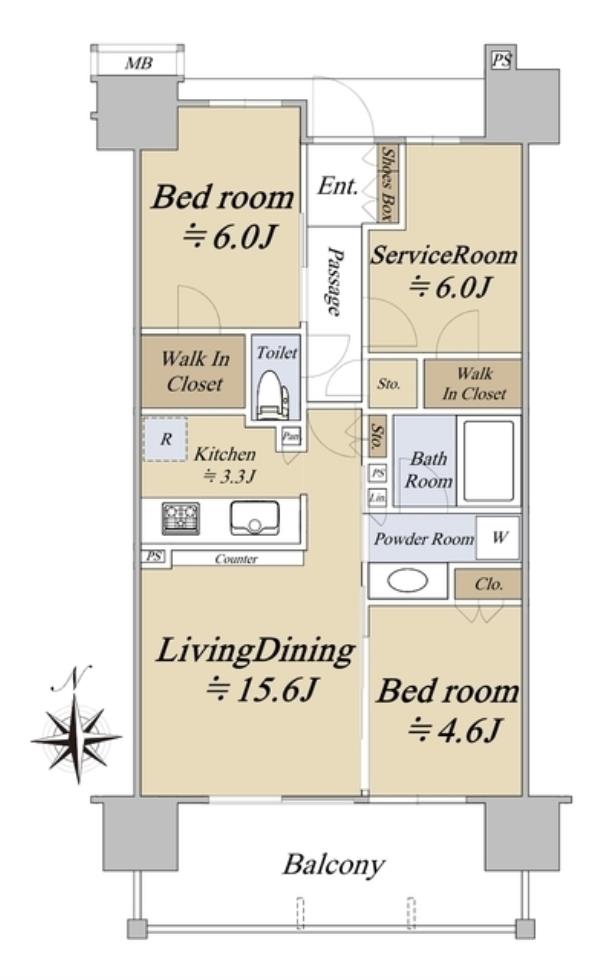 | 専有面積 | 67.01m2 | 間取り | 2SLDK ※Sはサービスルーム(納戸) |