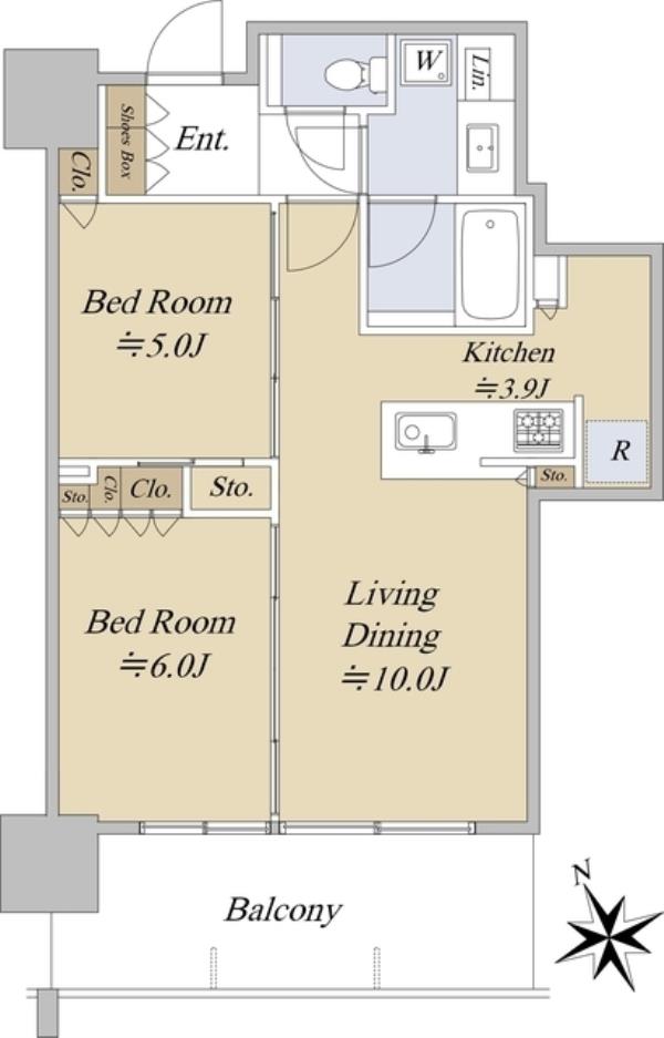 | 間取内訳 | 洋室5.0畳 洋室6.0畳 LDK13.9畳 | ||