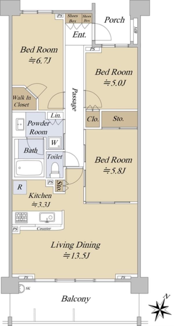 | 間取内訳 | LDK16.8畳 洋室6.7畳 洋室5.8畳 洋室5.0畳 | ||