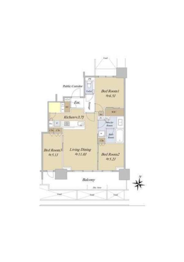 | 専有面積 | 71.68m2 | 間取り | 3LDK |