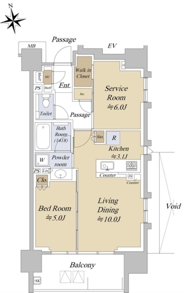 | 専有面積 | 55.72m2 | 間取り | 1SLDK ※Sはサービスルーム(納戸) |