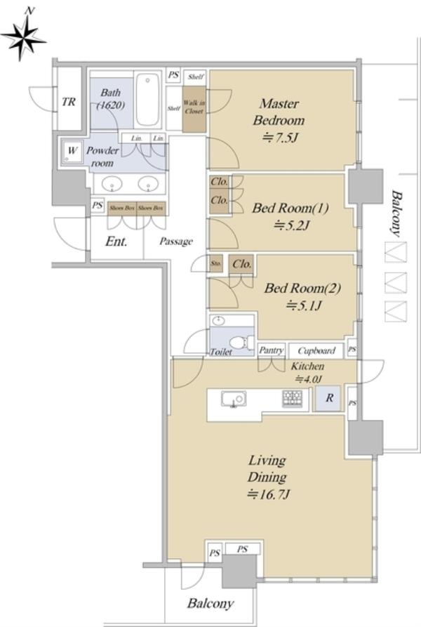 | 間取内訳 | 洋室7.5畳 LDK20.7畳 洋室5.2畳 洋室5.1畳 | ||