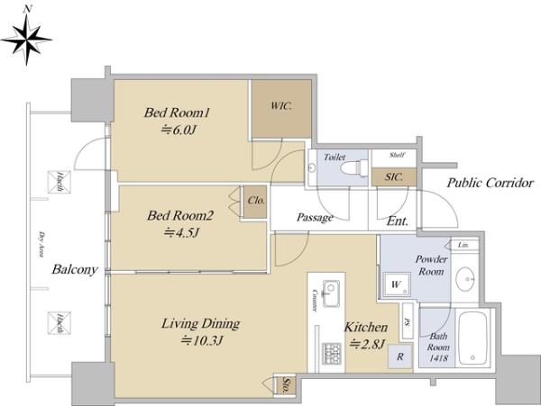 | 間取内訳 | LDK13.1畳 洋室6.0畳 洋室4.5畳 | ||