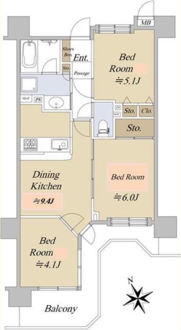 | 間取内訳 | DK9.4畳 洋室6.0畳 洋室5.1畳 洋室4.1畳 | ||