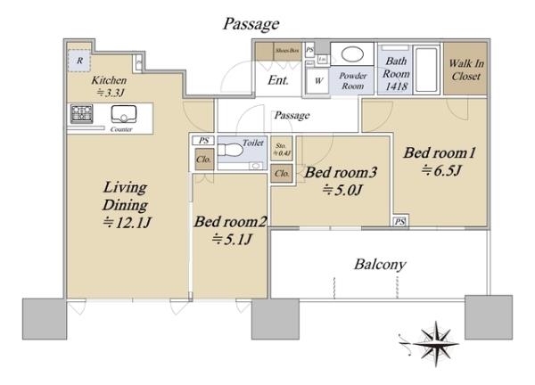 | 間取内訳 | LDK15.4畳 洋室6.5畳 洋室5.1畳 洋室5.0畳 | ||