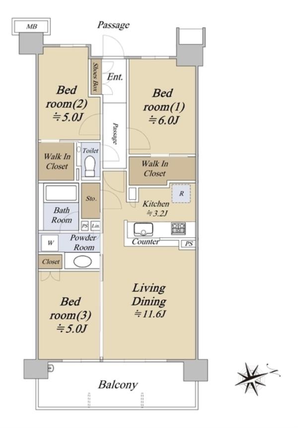 | 間取内訳 | LDK14.8畳 洋室5.0畳 洋室5.0畳 洋室6.0畳 | ||