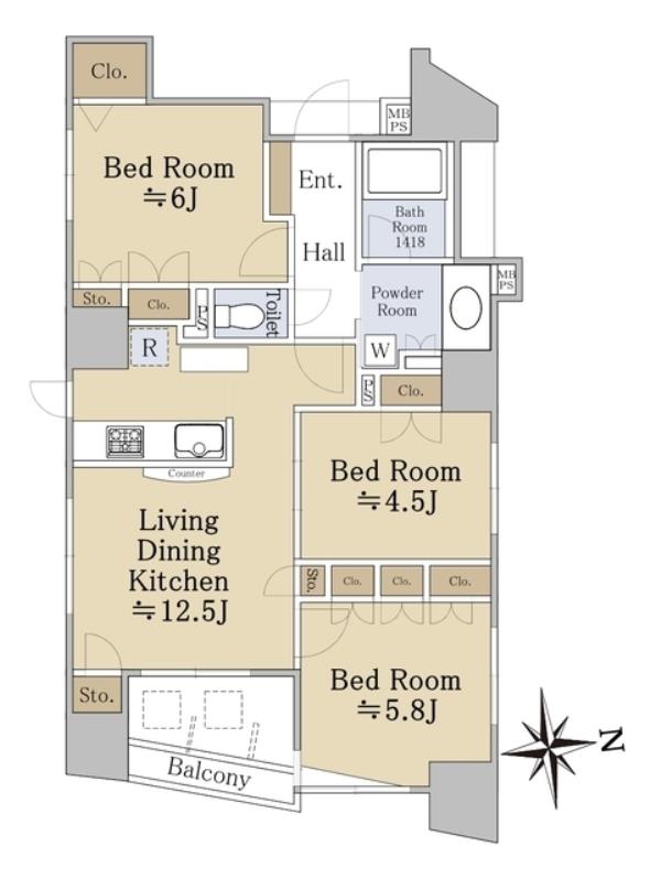 | 間取内訳 | LDK12.5畳 洋室6.0畳 洋室5.8畳 洋室4.5畳 | ||
