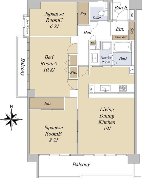 間取内訳 | LDK19.0畳 洋室10.8畳 和室8.3畳 和室6.2畳 | ||