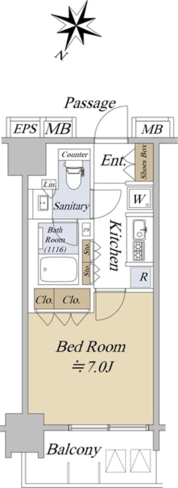 専有面積 25.87m2 間取り 1K