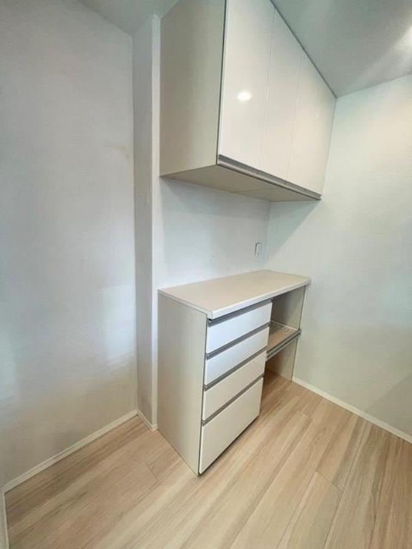 - キッチンの背面には便利なカップボードがあります。