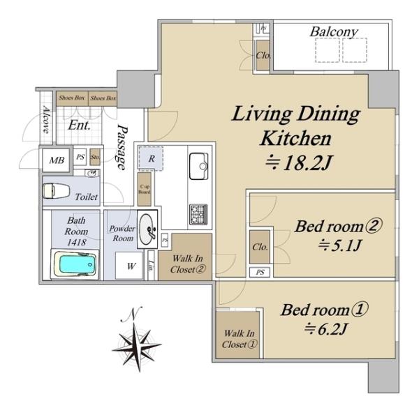 | 間取内訳 | LDK18.2畳 洋室6.2畳 洋室5.1畳 | ||