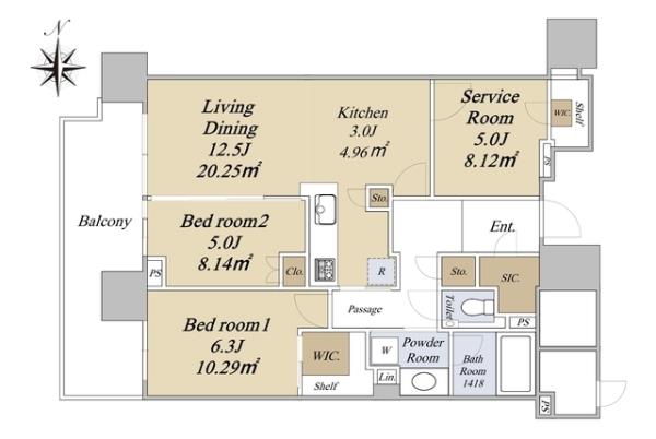 | 専有面積 | 76.92m2 | 間取り | 2SLDK ※Sはサービスルーム(納戸) |