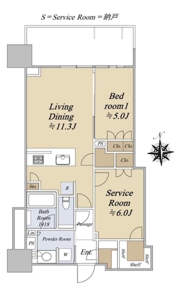 | 専有面積 | 60.86m2 | 間取り | 1SLDK ※Sはサービスルーム(納戸) |