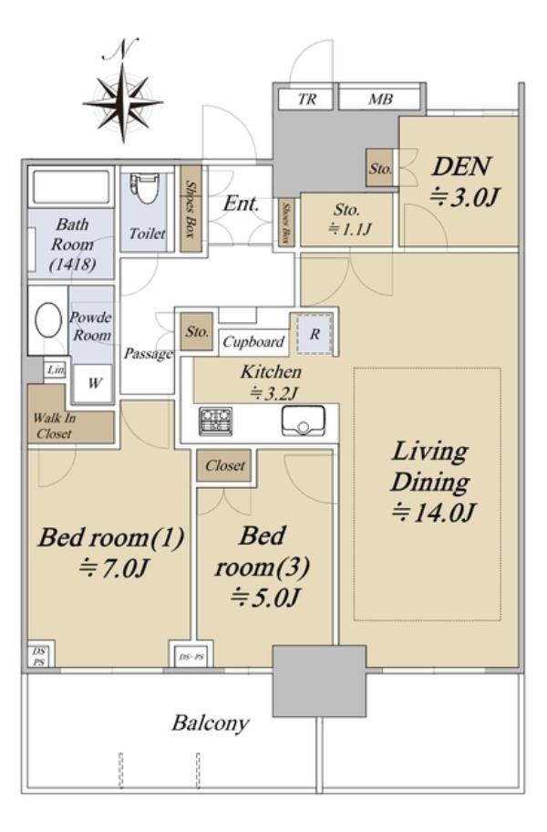 | 間取内訳 | LDK14.2畳 洋室7.0畳 洋室5.0畳 | ||