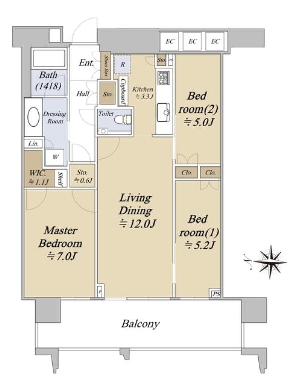 | 間取内訳 | LDK15.3畳 洋室7.0畳 洋室5.2畳 洋室5.0畳 | ||