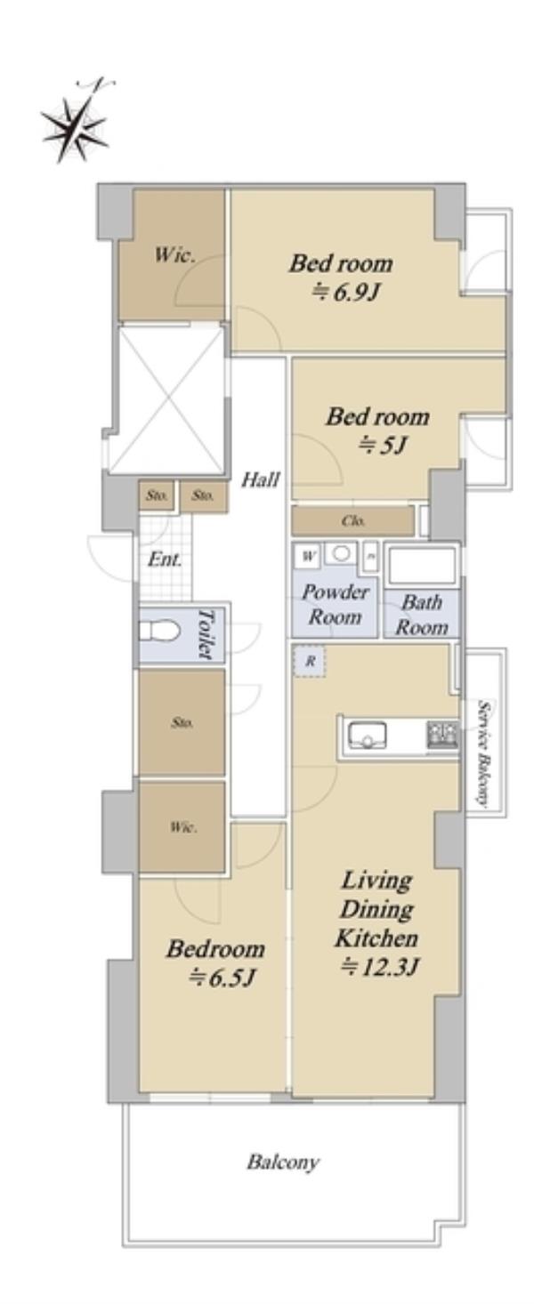 | 間取内訳 | LDK12.3畳 洋室6.9畳 洋室6.5畳 洋室5.0畳 | ||