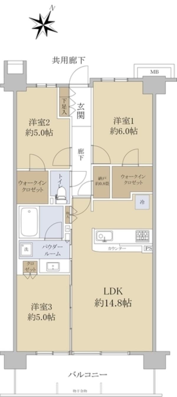 | 間取内訳 | LDK14.8畳 洋室6.0畳 洋室5.0畳 洋室5.0畳 | ||