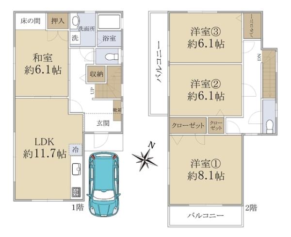 | 間取内訳 | LDK11.7畳 洋室8.1畳 洋室6.1畳 洋室6.1畳 和室6.1畳 | ||
