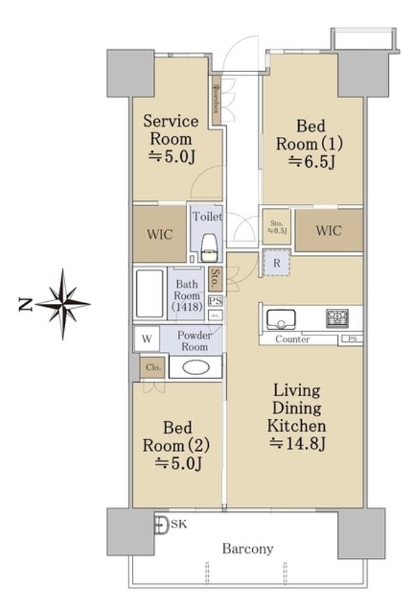 | 専有面積 | 70.35m2 | 間取り | 2SLDK ※Sはサービスルーム(納戸) |