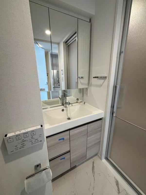 - 収納豊富な三面鏡の独立洗面台