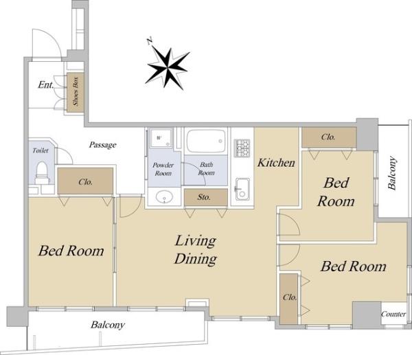 専有面積 | 71.36m2 | 間取り | 3LDK |