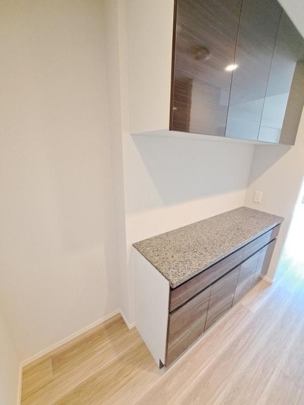 - 冷蔵庫および収納スペース