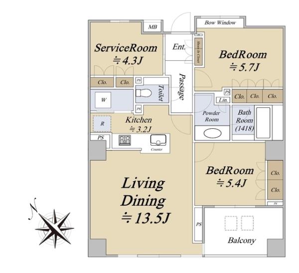 - 2SLDK※Sはサービスルーム(納戸)