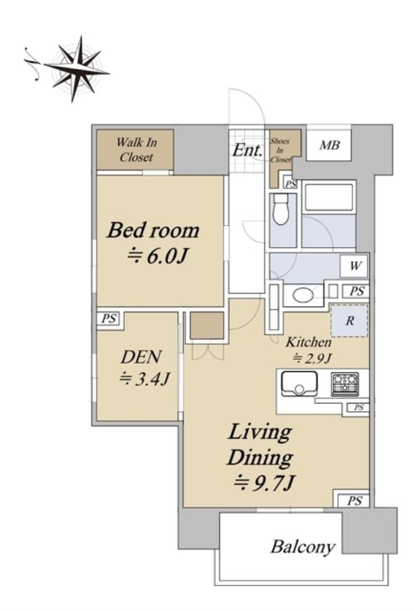 東京メトロ東西線「神楽坂」駅から徒歩4分!ホテルライクな内廊下!重厚感のあるエントランス。※間取り1LDK+DEN