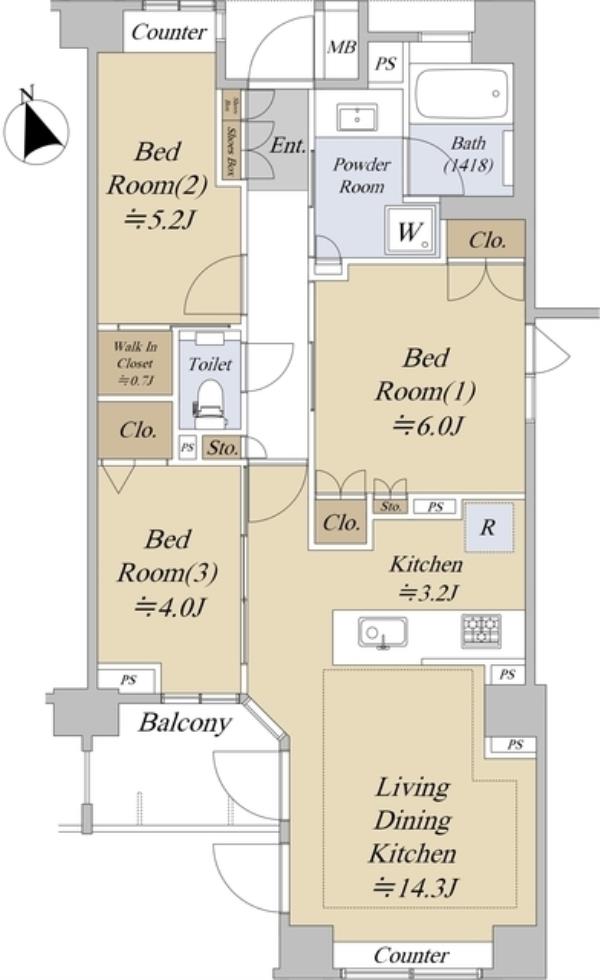 | 間取内訳 | LDK17.5畳 洋室6.0畳 洋室5.2畳 洋室4.0畳 | ||