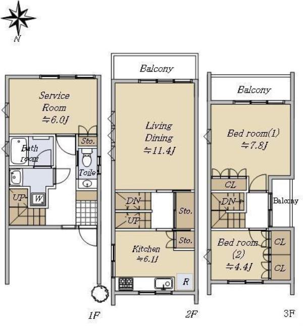 - 2SLDK※Sはサービスルーム(納戸)