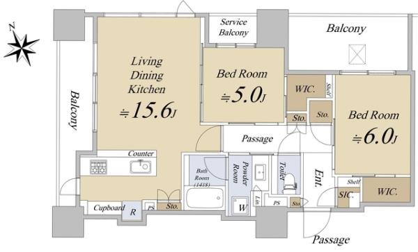 | 間取内訳 | LDK15.6畳 洋室6.0畳 洋室5.0畳 | ||