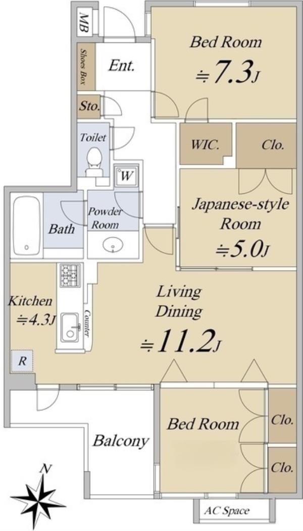 | 間取内訳 | LDK15.5畳 洋室7.3畳 和室5.0畳 | ||