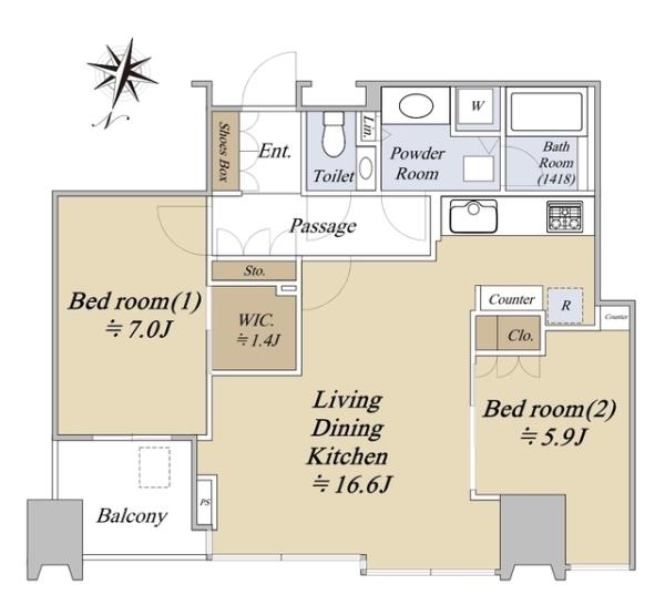 | 間取内訳 | LDK16.6畳 洋室7.0畳 洋室5.9畳 | ||