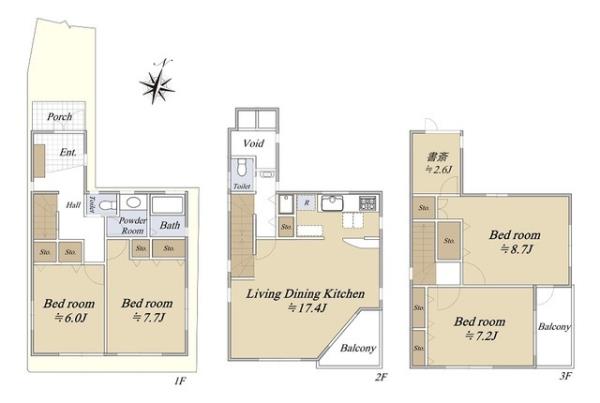 | 間取内訳 | LDK17.4畳 洋室8.7畳 洋室7.7畳 洋室7.2畳 洋室6.0畳 その他2.6畳 | ||