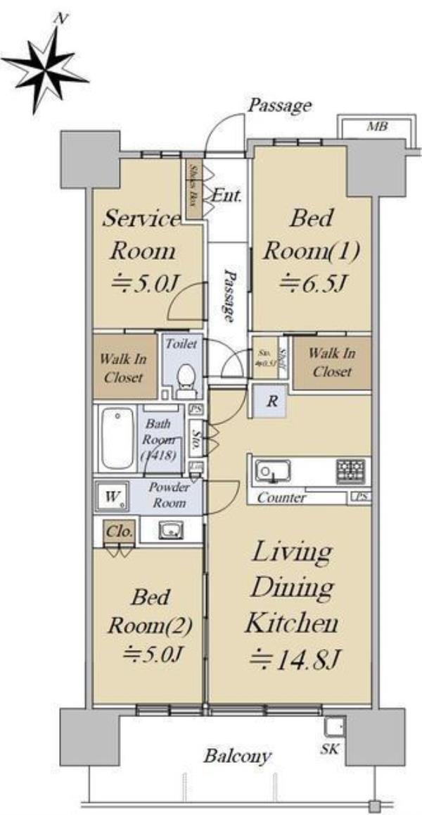 専有面積 | 70.35m2 | 間取り | 2SLDK ※Sはサービスルーム(納戸) |
